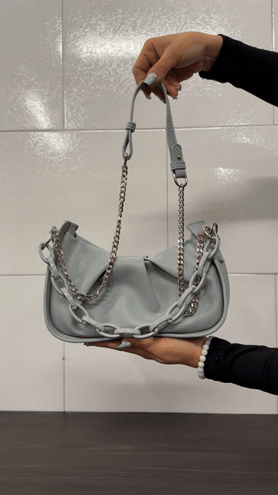El Combo Urban Chic combina practicidad y estética minimal: cartera mini gris “Cloud” con cadena y porta celular camel “Sand”, ambos en terminación símil cuero.