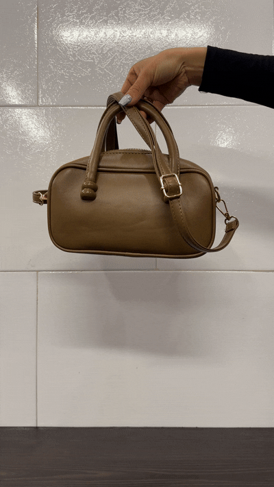 - Costuras definidas y herrajes metálicos dorados de alto brillo.