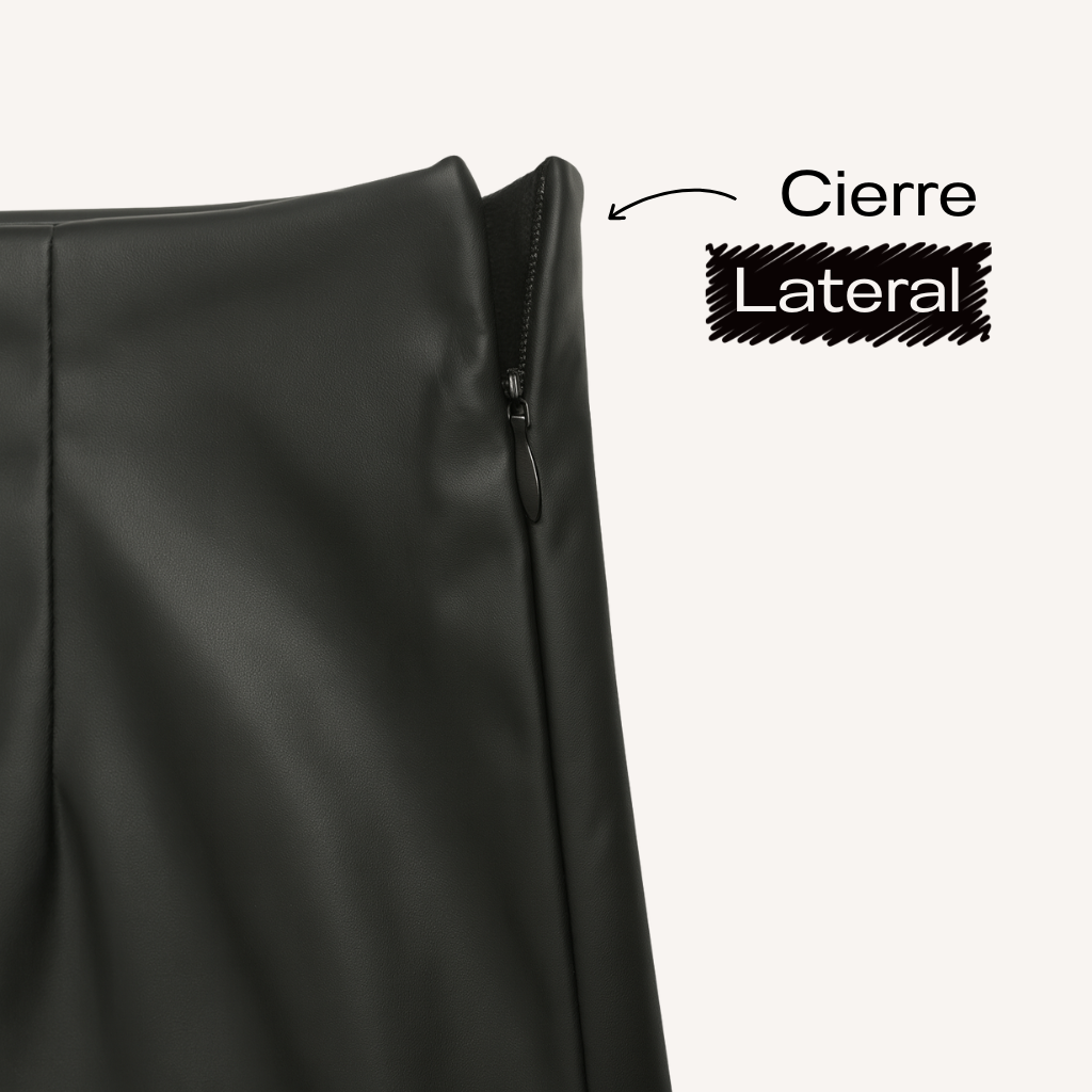 ✨ Corte asimétrico · Cintura con pinzas · Cierre lateral