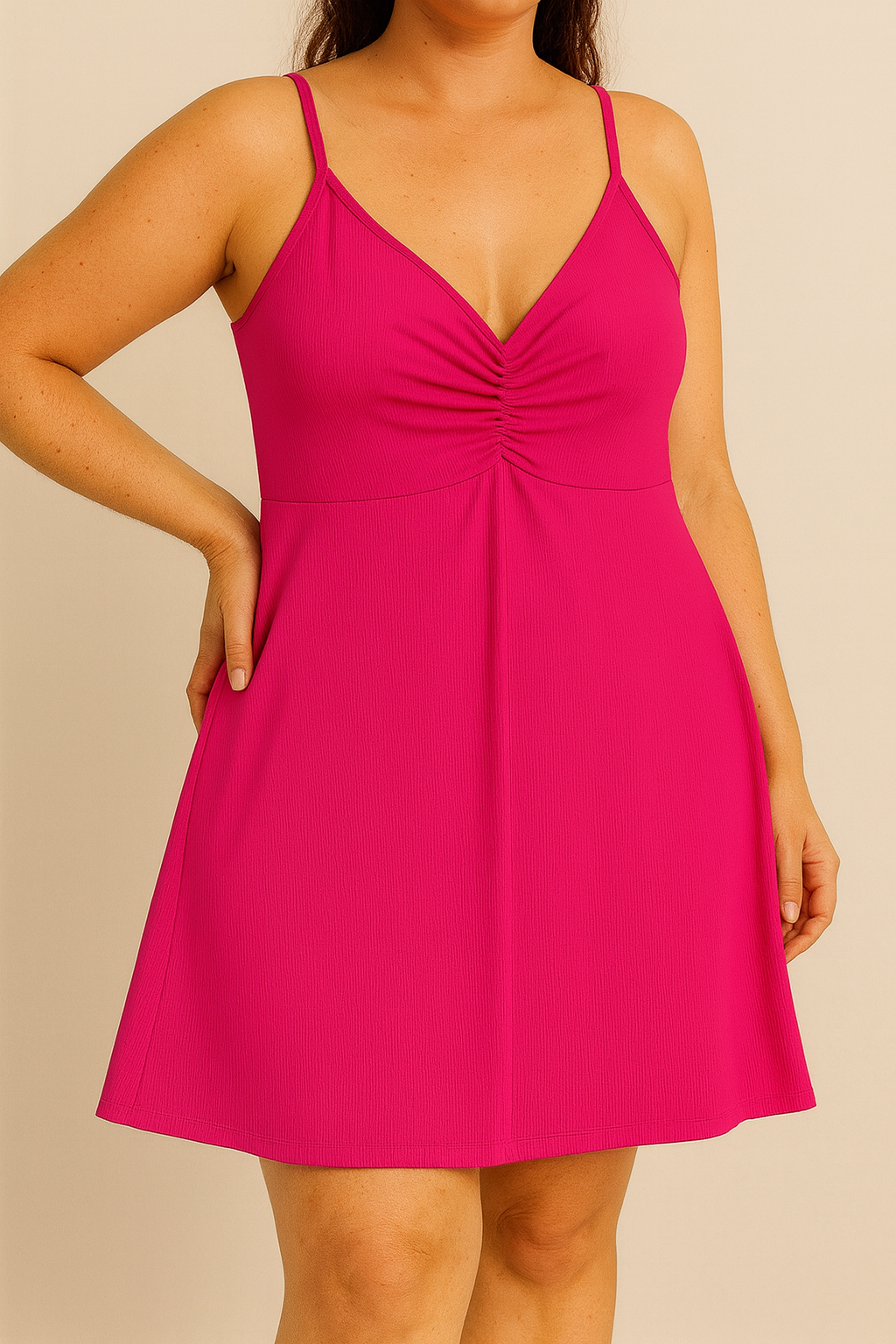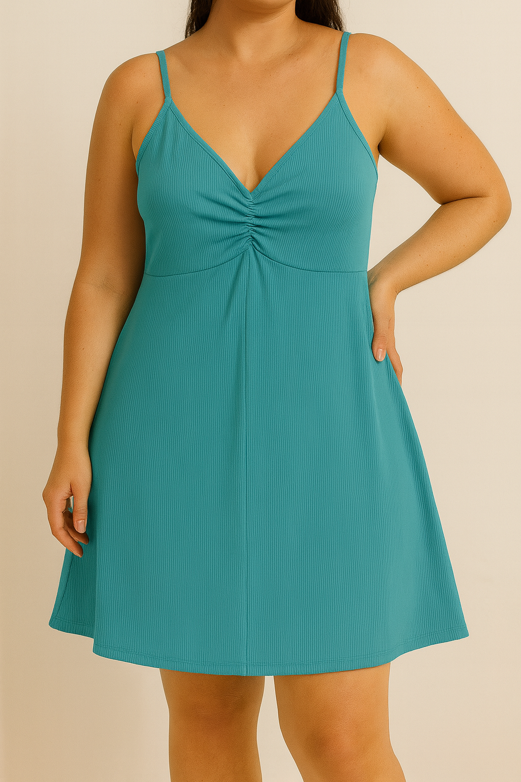 Vestido solero confeccionado en micromorley elástico, suave y adaptable. El frunce frontal realza el escote y estiliza, mientras que la caída liviana lo hace ideal para todos los días. Disponible en curva 3 al 7, perfecto para mujeres reales. 💖